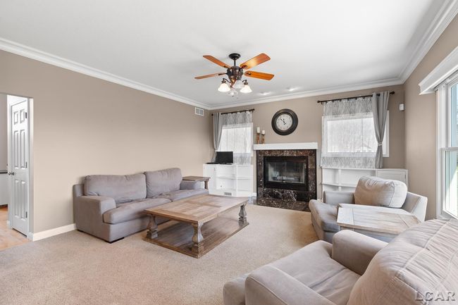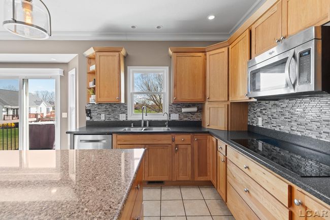 This stately colonial in the Windmill Crossing development of Adrian Township is wonderfully appointed and boasts many excellent features. The stone facade graces the front elevation and welcomes family and friends along Windmill Drive leading you to the side loaded 3.0 car attached garage that is adjacent to a nicely maintained concrete drive. Open floor plan and custom kitchen, quartz solid surfaces, wine captain and stainless appliances. Large breakfast bar and center island. The adjacent formal dining room is ample sizes for entertaining. An additional office/flex room is located just off the entryway. The kitchen opens to a cozy spacious family room with central natural fireplace and built in cabinetry. All bedrooms are located on the upper level and features a primary suite complete with soaking tub and large closet. The interior balcony, complete with reading nook overlooks the family room. The finished lower level and a full bath; walkout with patio and elevated deck.
