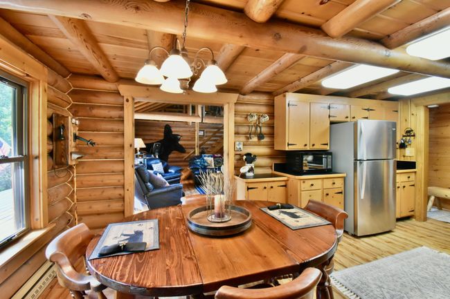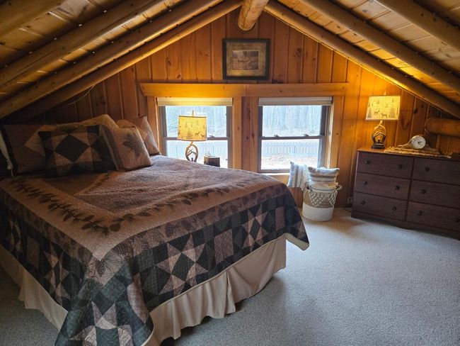 Welcome to this beautiful 20-acre parcel with the most adorable log home you will ever see! Great care has gone into this home, as you will see. A beautiful large wrap-around deck and gazebo are great for your outside. Upon entering, you will note the full log ambiance with open beamed ceiling. There are so many updates, including: Kitchen: all new Hickory cabinets and hardware, counter tops, sink and faucet, antler lighting, all new Whirlpool stainless steel appliances. Bathroom: new hickory cabinets, new vanity, counter top, sink and faucet, new GE Profile combo washer and dryer, antler lighting. There are new antler ceiling fans in the living room and family room area, new lighting in the hallway and outside lighting on the house and garage has all been replaced. The adorable “She Shed” attached to the garage has new paint and carpet, Outside: Seller has built new planters, installed new rock all around the yard and has done a lot of yard work. Note: Seller will be staining the deck. Walk to Farm Island Lake and only 5 miles to Bay Lake. Very private and plenty of room for out buildings.