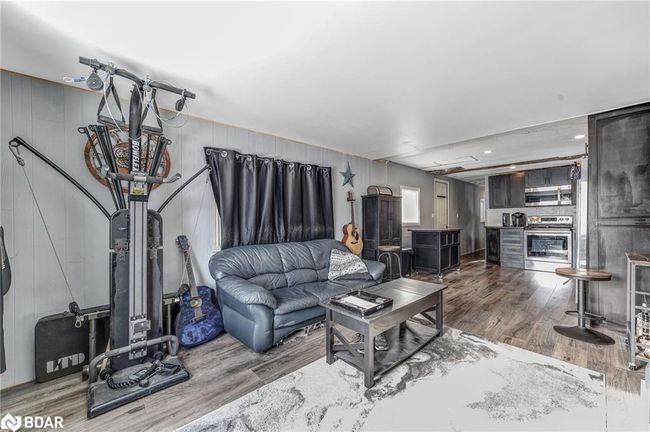 MOTIVATED SELLER AND QUICK CLOSING AVAILABLE! Nestled on a mature, tree-lined lot in Angus, this charming mobile home offers privacy and peace - awaiting your finishing touches. Featuring a welcoming covered porch, updated flooring throughout, and two generously sized bedrooms, it's perfect for first-time buyers or those seeking to downsize. The 10x16 shed, built in 2023, includes windows and power (60 Amp), making it ideal for storage or a mini workshop. With shingles replaced in 2020 and a well-maintained lot, the outdoor space is perfect for relaxing or entertaining. New Septic and Appliances Negotiable. Current land lease fees of $435.47/month include taxes. Don't miss this hidden gem - schedule your showing today!