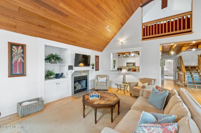 This 4BR, 3.5BA reverse floorplan tucked among mature oaks has big rooms, great bones and awaits your personal touch! Next to the detached two-cart garage, a large front sun deck leads to a covered rocking chair porch-perfect for whiling away time enjoying cicada song. Inside, on the left of the home's foyer, is a generous, bright corner King suite with a walk-in closet, access to a private screened porch and its own full bath (which, like all the home's full baths, offers a dual vanity and water closet). Down the hall, past the laundry, is a sunlit corner Queen suite with windows on three sides, two closets and a sunken, jetted tub in its ensuite BA. Hardwoods take you upstairs to your own treehouse perspectives through myriads of large natural-light sharing windows. The substantial open floor plan begins with a roomy dining area, sided by Maritime Forest views. Dine here or al fresco on the nearby screened dining porch. The kitchen features stainless appliances, yards of granite counters, plenty of storage and overlooks the considerable vaulted living space which boasts a sitting area, game table and fireplace as well as golf course views. At the end of the hall, beyond the powder room, is the vaulted Primary King suite, awash in sunshine and delivering golf course prospects as well as a sitting area and full bath. Conveniently located, close to the marina, shops and restaurants and conveying with two golf carts. BHI Equity Lifestyle & Shoals Club memberships are available for separate purchase.