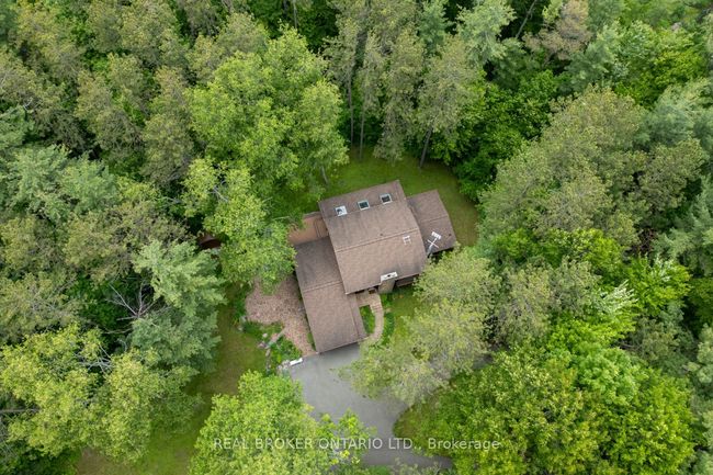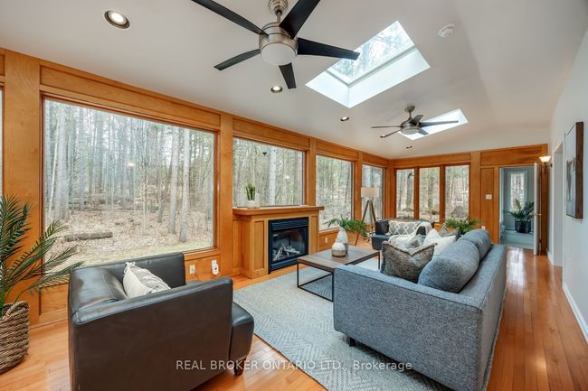 Welcome to your private retreat set on approx. 2 acres and surrounded by mature trees. This beautifully maintained 5+1 bedroom, 2-storey home offers space, character, and absolute serenity. Tucked away from the road, this property blends warmth and comfort with timeless charm. Step inside and feel instantly at home. The main level features a cozy family room with a vaulted ceiling and walkout to the back deck, plus convenient access to the mudroom and double garage. The sun-filled living room offers broadloom flooring, large windows, and a propane fireplace with a brick surround, perfect for quiet evenings. A formal dining room connects the space with ease, leading into the spacious eat-in kitchen with hardwood floors, two pantry cupboards, undercabinet lighting, and a peek-through into one of the home's most breathtaking features, the sunroom. Magnificent, wall-to-wall windows overlook the peaceful, wooded backyard making the sunroom a true year-round haven. With three skylights, a propane fireplace, and walkout to the deck, it's the perfect place to enjoy morning coffee, a good book, or a quiet moment with nature as every season brings a new view. The main level also features a 2-pc powder room and a generous, primary bedroom with walk-in closet and 3-pc ensuite. Upstairs, you'll find four more bright bedrooms, all with hardwood floors. One features a sliding door look-out, its own 3-pc ensuite, and a walk-through to an adjoining room ideal as a nursery, home office, or creative space. The partially finished basement adds even more versatility with a large rec room, an additional bedroom, laundry, and a spacious storage area with four closets. Enjoy The large back deck, flagstone patio, and an approx. 10x16 ft storage shed all surrounded by mature trees that offer unmatched privacy and calm. This is more than a home, it's your personal escape.Show Description