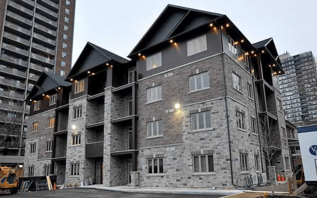 If you like the idea of paying condo fees for exterior maintenance, but you also want to have a front door and space for your kids to run around, then perhaps a townhouse complex managed by a condo corporation is right for you. This stunning townhouse complex is not yet completed but will feature three spacious bedrooms and every upgrade imaginable. Raise your family in this home with nine-foot ceilings, a parking space, and a 240-foot private rooftop terrace. While this luxury townhouse is more expensive at a list price of $670,000, it’s still hundreds of thousands of dollars cheaper than the equivalent property in Toronto.