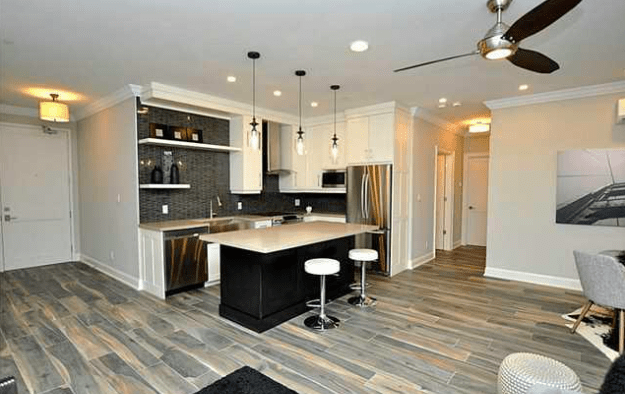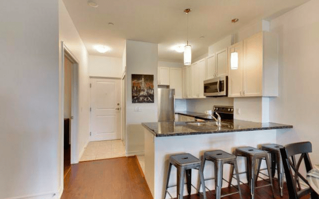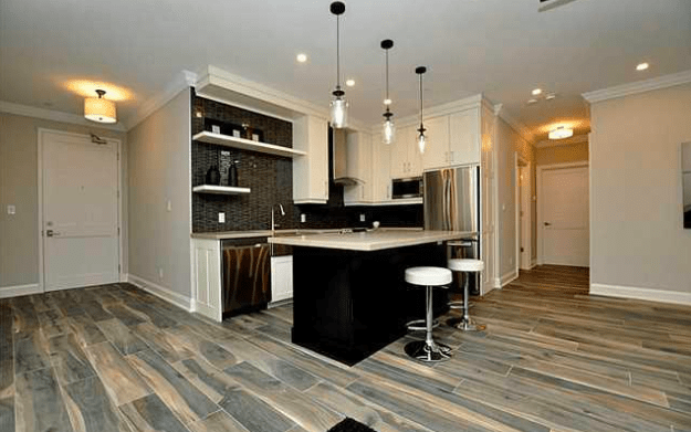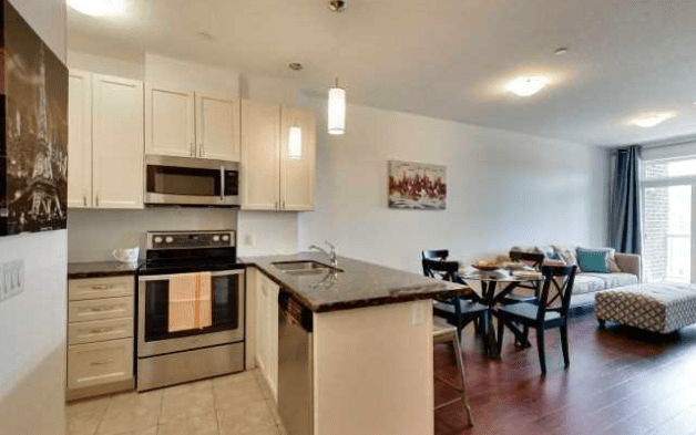For young, urban professionals, the answer to your condo quest is the Urban West building. In this building, you’ll find a two-bedroom, one-bathroom condo listed for $349,000. This condo has every upgrade you could hope for while still maintaining an affordable price. Think stainless steel appliances, ensuite laundry, and central air. If you’re considering starting a family, you’ll have room to grow in this unit because it comes with a parking space, a storage locker, and a second bedroom.