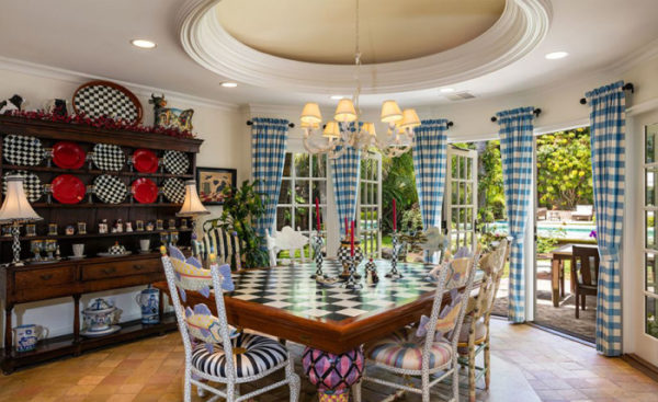 SOLD: The original Hollywood golden girl (and Kate Hudson’s hot mama) and husband Kurt Russell have successfully sold their California estate (which we originally featured in October). The power couple have called the mansion, nestled in the pricey Riveria neighbourhood, home since 2004, when they picked it up for $4.12 million. In addition to Goldie’s quirky design details (including a Mad Hatter-esque checkerboard kitchen), this property features a meditation pavilion, pilates gym, sauna, and his and hers closets. Plus, what bathroom is complete without a chandelier?