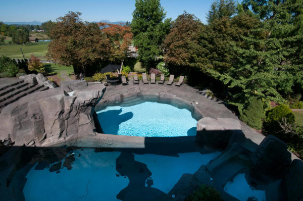 - A waterfall pool and swirl pool / hot tub