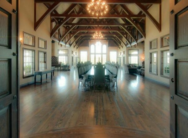 - Great hall-style dining room with vaulted ceilings