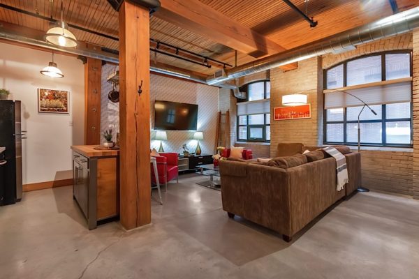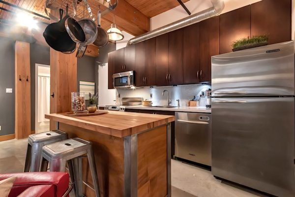 In a city of condos, a true hard loft conversion, in one of Toronto’s most enviable neighbourhoods, is akin to a real estate unicorn. But that’s what you’ll find at 111-68 Broadview Avenue: A rare, one-of-a-kind home. Located within the historic Broadview Lofts, this one-bed, one-bath, 772-square-foot-unit is full of custom details, from the extra wide stainless steel industrial-style door, to the vaulted wood ceilings. The kitchen has been meticulously updated with stainless steel appliances and butcher block island, while polished concrete floors, exposed brick, and quartz countertops round out the factory-chic aesthetic. Unique industrial grid windows flood the open concept living space with light, and ground-floor location offers easy outdoor access. The building’s amenities include 24-hour concierge, rooftop terrace, and party room. Parking and locker are included.