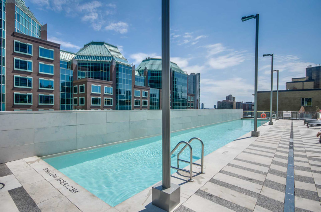 A roomy 95-square-foot balcony offers sweeping views of Toronto’s downtown, and the building is appointed with enviable amenities including a yoga room, rooftop pool, 24-hour concierge, guest suites, and a sauna. Parking and storage space included. Located just steps from Jarvis and Charles Streets, you’ll also be just steps from multiple transit, retail, and dining options.