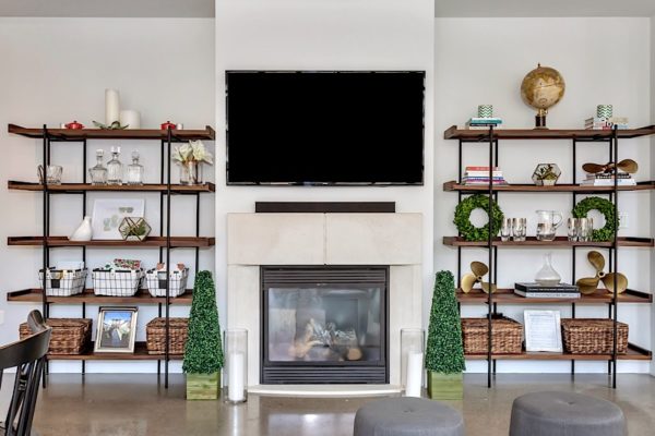 And when it comes to condo-living bells and whistles, this unit has them all, with chic stainless steel kitchen appliances, gas fireplace, and en-suite laundry. A master retreat features a roomy walk-in closet, outfitted with custom organizers, and four-piece ensuite bath with quartz countertops and large vanity. A second bed / den offers room to grow or office space option, across the hall from a second full three-piece bath, and a walk-out 107-square-foot balcony offers sweeping views of the internal courtyard as well as the hip King Street strip.