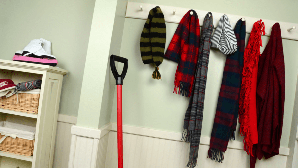 Wet winter gear like gloves or hats often need to dry out before they can be stored. A drying rack is a great addition for airing out these items and if space is limited, wall-mounted drying hooks or fold-out racks work well.