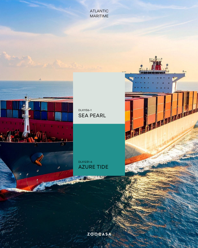 Coastal Canada introduces a softer, muted spectrum inspired by foggy shores and granite outcrops. Sea Pearl (DLX1136-1) and Azure Tide (DLX1231-6) bring the Atlantic Ocean’s energy indoors, while textured wood, stone, and linen make spaces feel warm and inviting.