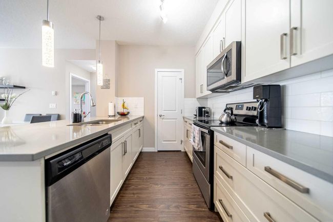 Welcome Home to Cranston! Step into your bright and spacious main-floor retreat in one of Calgary’s most desirable southeast communities. This beautifully maintained 2-bedroom, 2-bath condo combines modern design with everyday convenience in a sought-after, family-friendly location. The open-concept layout features a well-appointed kitchen with sleek countertops, abundant cabinetry, and a seamless flow into the dining and living areas—perfect for entertaining or relaxing. Large south-facing windows flood the space with natural light and open onto your private patio, ideal for enjoying morning coffee or evening sunsets. The spacious primary suite includes a full ensuite and generous closet space, while the second bedroom and bathroom offer flexibility for guests, a home office, or a roommate. Added conveniences include in-suite laundry, an outdoor parking stall right near the entrance, and a private storage locker for your seasonal items or gear. Cranston offers a true sense of community with exceptional amenities right at your doorstep. Enjoy access to Cranston Century Hall, featuring a gym, splash park, sports courts, skating rink, and event spaces. Outdoor enthusiasts will love the endless walking and biking pathways connecting to Fish Creek Park and the Bow River, while families benefit from excellent nearby schools, playgrounds, and green spaces. Shopping, dining, and daily necessities are minutes away at Cranston Market and Seton Urban District, home to coffee shops, grocery stores, restaurants, the YMCA, South Health Campus, and Cineplex VIP Theatre. Quick access to Deerfoot and Stoney Trail makes commuting simple and efficient. Whether you’re a first-time buyer, investor, or downsizer, this bright and inviting main-floor condo offers the perfect blend of comfort, community, and convenience. Experience the best of Cranston living—schedule your private viewing today!