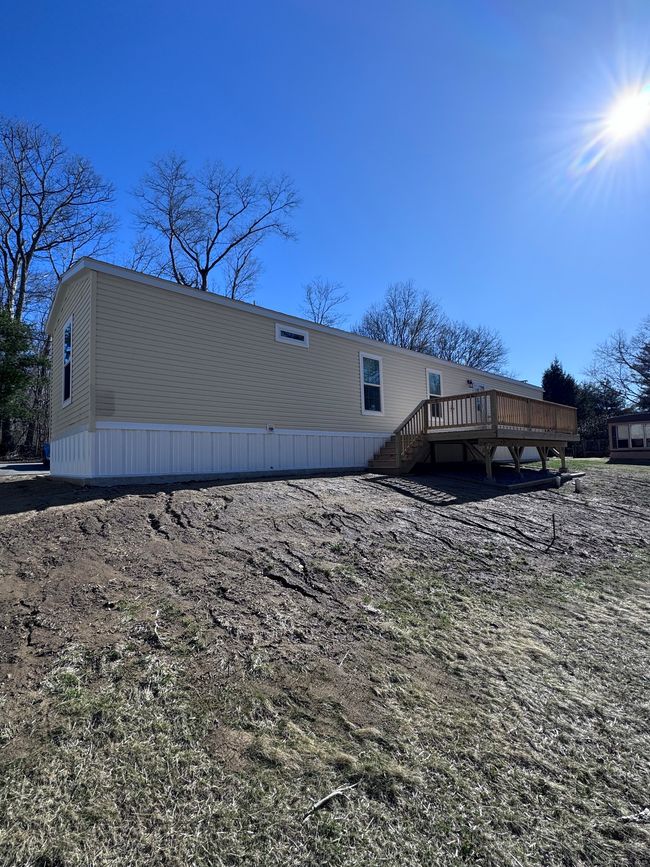55 and Older Community with a brand new unit. 2 Bedrooms and 2 full bathrooms, large living room and eat-in kitchen with all appliances, dishwasher, gas stove and oven, microwave and dishwasher. Room for an island or table. Livingroom is spacious with a country feel with a barnwood wall for you to hang your TV. Large deck on the back of the home for great entertaining or relaxation.