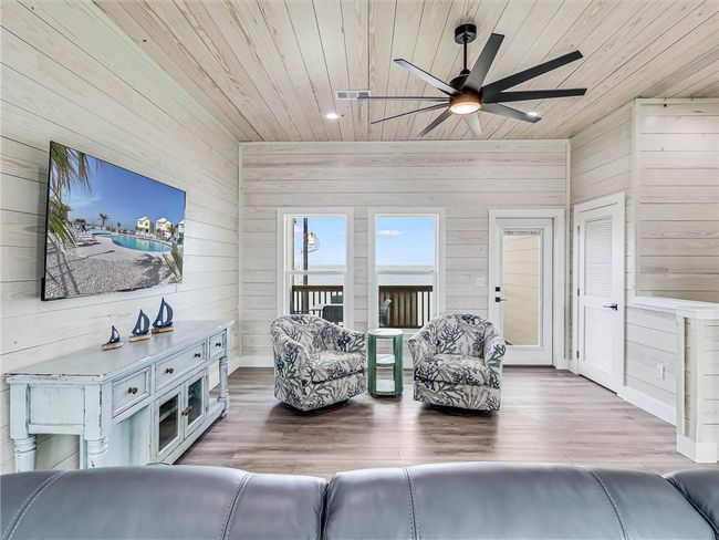 This waterfront home is the perfect Vacation House or Short Term Rental Investment. It is coveniently located just a short walk from all the restaurants and shops in Fulton and right on the waterfront. This 3 bedroom 2.5 bath two story home is spacious and has an amazing coastal feel. The downstairs has a living area, 2 bedrooms, a full bath and a laundry closet. Located right outside the door is a nice patio overlokking the water and your very own private hottub. Upstairs is the open Living area/ Ktchen/ Dining, the Master Bedroom, Master bath and a half bath. The upstairs deck has fabulous panoramic views of the Bay and most of Fulton waterfront. The community pool is the perfect place to spend the day with family and friends. Low HOA fee! All Stainless Appliances convey. Some of the upgrdes include Granite Countertops through out, Shiplap walls, sprayfoam insulation, a metal roof and Hurricane Impact windows and doors.