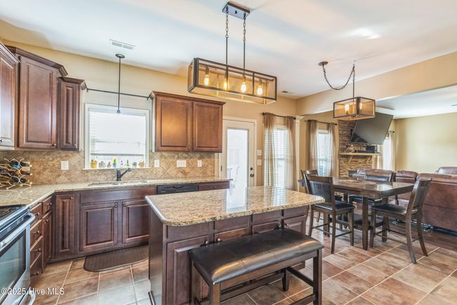 This charming 4-bedroom, 2.5-bathroom home offers the perfect blend of comfort and convenience. The formal dining room features coffered ceilings, while the kitchen features granite countertops, tile backsplash & upgraded tile floors/light fixtures. The living room features a stone fireplace. Upstairs you'll find a huge loft, an ideal space for a game room/home office. Retreat to the primary bedroom suite, complete with a walk-in closet and an ensuite bath that boasts dual vanities, a garden tub, and a separate shower. The 3 additional bedrooms are specially designed with ample closet space. A guest bath with dual vanities compliments the thoughtful layout of the home. Outside, the screened-in porch and large patio offer ample space for outdoor fun/activities with a privacy-fenced yard. Located conveniently near Seymour Johnson Air Force Base and Bypass 70, this home is close to local schools like Rosewood Elementary, Middle and High, making this property is ideal for all!