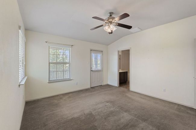 Discover this move-in ready three-bedroom, two-and-a-half-bathroom home with a balcony, situated in the vibrant area of Jarrell. No floorplans like this on the market right now. The downstairs features upgraded wood-look vinyl plank flooring and an open floor plan, perfect for entertaining. On the first floor, you'll also find a convenient half bath and a separate utility room, as well as enhanced lighting and a ceiling fan. The kitchen includes a bar-height seating area, a built-in microwave, an electric range, a brushed nickel pull-down faucet with a water spigot, a dishwasher, and a pantry for all your storage needs. Upstairs, the spacious primary suite offers access to the front balcony, making it an ideal spot for morning coffee or evening relaxation. The primary bathroom boasts a single vanity with a cultured marble top, a garden-style tub, a walk-in closet, and upgraded vinyl flooring. Completing the second floor are two generously sized guest bedrooms, providing ample space for family or visitors. The backyard features a covered patio and backs onto a green space easement, ensuring no shared fence with rear neighbors. There are two pools, a splash pad and parks, there is an additional fee to use the pools and clubhouse through the Sonterra MUD