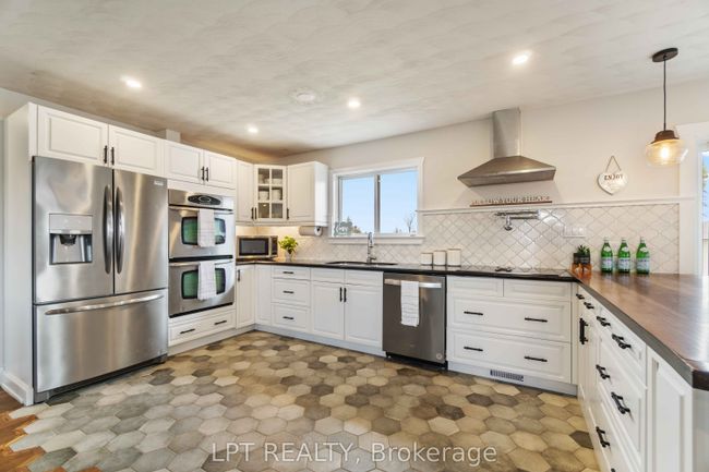 Welcome to this beautiful 3Bed/1Bath bungalow on almost 2 acres of meticulously landscaped land just minutes from the conveniences of Smiths Falls. The living room features pristine hardwood floors & a cozy wood fireplace creating a seamless flow into the open concept kitchen. This culinary space is a chef's dream w/high-end SS appliances, granite countertops, double ovens, modern cabinets & a statement tile floor. The dining area is spacious enough to host gatherings while the adjacent family room offers a perfect spot to unwind w/a movie or for children to play. The home includes three well-sized bedrooms & a large family bath with quartz countertops along w/a separate laundry room enhancing everyday functionality. Outside the vast deck provides a tranquil setting for outdoor living & the sizable insulated double car garage complete w/ample storage space & a workshop adds to the appeal of this exceptional property. This home is a true gem combining rural charm w/modern living., Flooring: Hardwood, Flooring: CeramicShow Description