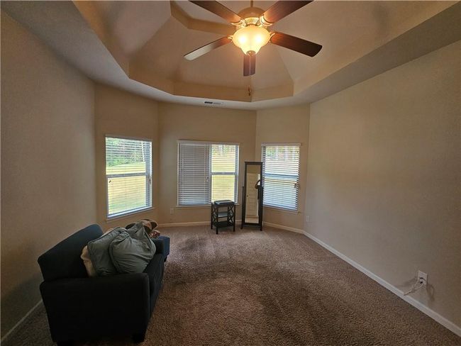This stunning home will not last long! Brick front home on beautiful lot (largest in subdivision), neighbor fenced on both sides. Inviting two story foyer opens to large formal Dining Room with bay window, outfitted with coffered ceilings with a beautiful chandelier. Open concept floorplan is perfect for entertaining. Family Room with fireplace and coffered ceiling. Gourmet Kitchen with TONS of cabinet space, stainless steel appliances, granite counters, island, pantry and eat-in area. Owner's suite Bedroom on main with vaulted ceilings, ensuite Bath featuring double vanity, garden tub, large separate shower and spacious custom designed California walk-in closet. Upstairs has large loft/media room (space used as 5th Bedroom in other floor plans) and 3 large secondary Bedrooms all of which have walk-in closets. Wood blinds professionally installed throughout the home. Covered patio and large backyard great for entertaining. This home truly has it all, including the largest floor plan in the subdivision with 3, 256 sq. Feet.