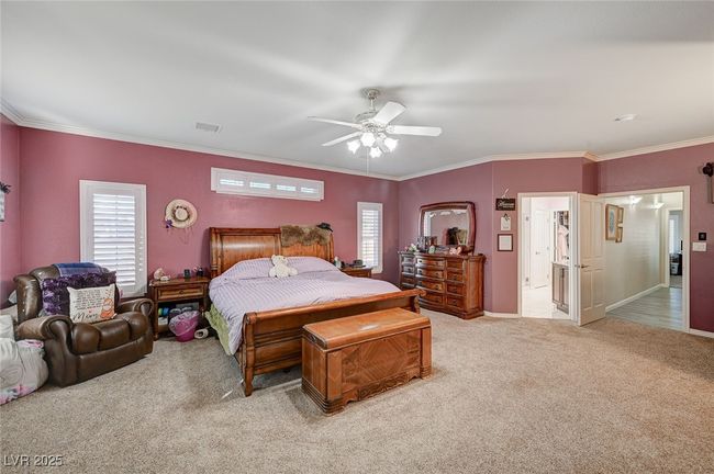 Stunning Horse Estate with Luxury Features & Endless Amenities! Nestled on nearly 5 acres, this estate is a haven for horse enthusiasts & anyone seeking an exceptional lifestyle. Inside, you’ll find crown molding throughout, adding an elegant touch to home.The upgraded kitchen is a chef’s delight, featuring high-end appliances, ample counter space, custom cabinets, large sink featuring a cup cleaner that makes cleaning a breeze.Gorgeous master w/ ample space featuring stunning bathroom w/ jacuzzi tub, separate rain shower w/ dual shower heads, dual sinks, makeup table, custom defogging mirrors w/ LED lighting adds that extra luxurious charm.Lovely guest rooms equipped w/ ceiling fans & custom built in closets. Great room perfect for home office. Heated & chilled pool w/ automatic pool cover. Air conditioned three car garage. Two grazing areas, full size arena, barn w/ air conditioned tack room. 1500 sq ft agricultural building. Large temperature controlled shop w/ high ceilings & garage.