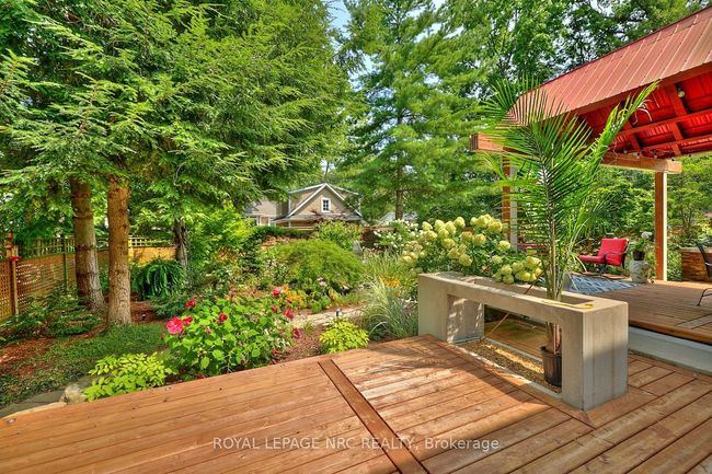 Striking 2-storey contemporary meets traditional. So spacious, so light, so airy. Welcome to this renovated dream home in the heart of Niagara-on-the-Lake, surrounded by beautiful gardens, a tranquil retreat with backyard pathways, koi pond, and covered porch to relax and unwind. Walking into the home, you will notice the open feeling from the vaulted ceilings and windows. The home has been fully painted with neutral tones. To the right is a beautiful stone gas fireplace in the front living room, which leads to the spacious kitchen with Cambria stone countertops, island for 4, premium appliances including Wolf gas range, and open to a large dining space with views to the back gardens. On this floor you will also find a family room with built-ins and walk out, a 2nd gas fireplace, and 2 pc guest bathroom. The upper level has 3 generous bedrooms, 2 bathrooms (1 an ensuite), large walk-in closet in the primary, and laundry room. Please see photo #2 for upgrades and features. Come view this gem in Niagara-on-the-Lake today where you are just minutes from the theatre, restaurants, shops, and more!