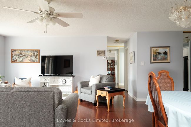 Welcome to this bright and spacious 2-bedroom, 2-bathroom condo in the quiet, well-kept Whitaker Mills community. This ground-level unit offers easy, stair-free access and a comfortable one-floor layout, ideal for anyone seeking convenience and low-maintenance living. Freshly painted and move-in ready, the home features hardwood flooring in the living and dining areas, plus vinyl tile in both bedrooms and bathrooms for a clean, modern finish. Ceiling fans have been added for comfort throughout. At the heart of the home, you'll find a bright, functional kitchen with an abundance of cabinetry and generous counter space perfect for cooking, organizing, and enjoying everyday life. The kitchen overlooks the dining area, creating a seamless connection that's ideal for hosting or staying connected while preparing meals. The primary suite offers pocket doors, double closets, and a private 4-piece ensuite with a walk-in spa-style tub. The second bedroom and 3-piece bath are thoughtfully positioned for privacy ideal for guests or a home office. You'll also find an in-unit laundry area with extra storage. Step out from the living room onto your private patio and garden retreat, where mature landscaping offers a peaceful escape just steps from home. This beautiful walk-out space is perfect for morning coffee, quiet evenings, or days spent gardening with plenty of room to relax or entertain. A charming outdoor shed adds convenient storage for tools and seasonal items, making outdoor living both effortless and enjoyable. Set in a peaceful neighborhood close to the Rotary Trail, Otonabee River, East City shops, and Peterborough Golf & Country Club, this home offers the ideal mix of location, comfort, and style.Show Description
