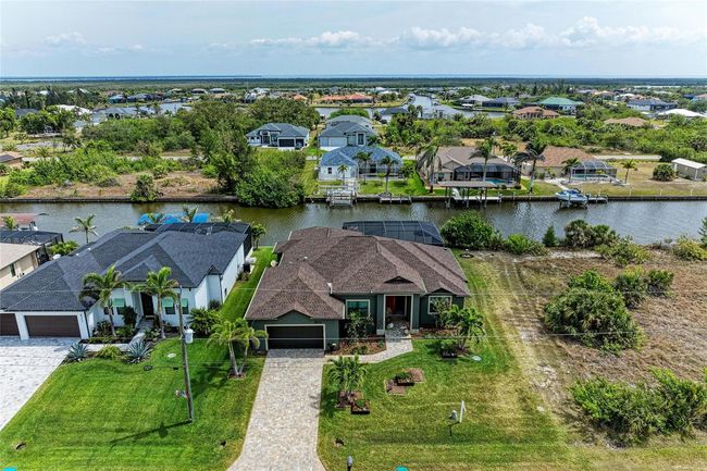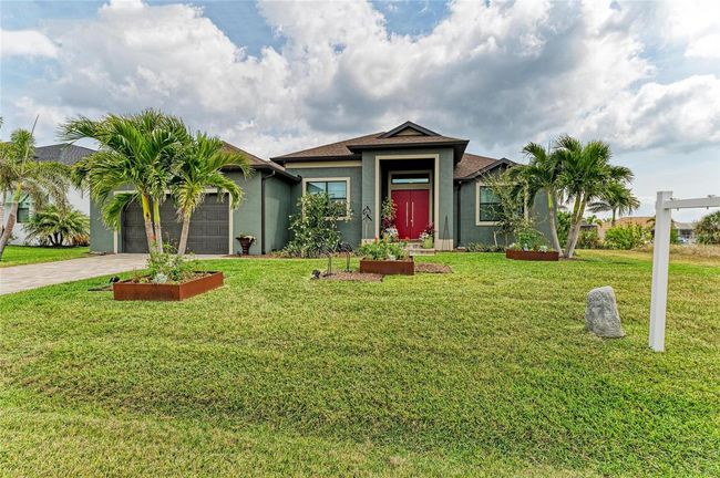 Built in 2019, this beautifully designed waterfront residence offers the perfect blend of comfort, function, and Florida coastal living. Situated on a canal with direct access to the Gulf of Mexico, this home provides a peaceful setting for boating, fishing, and enjoying the natural beauty of Southwest Florida. Thoughtfully planned and meticulously maintained, this property features 3 bedrooms, 2 full baths, a flexible bonus room, and an open, modern floor plan ideal for both everyday living and entertaining. The heart of the home is a spacious great room with abundant natural light, high ceilings, and an open connection to the kitchen and dining areas. The kitchen is equipped with granite countertops, an oversized island with bar seating, stainless steel appliances, and a generous walk-in pantry offering plenty of storage space. The open layout encourages gathering and conversation while maintaining a warm, inviting atmosphere. The primary suite serves as a private retreat, complete with a large walk-in closet and sliding doors that open directly to the pool and lanai. The en-suite bath features dual vanities, granite countertops, a walk-in shower, and elegant finishes that create a spa-like experience. Two additional bedrooms provide comfortable guest accommodations, while the flex room can be used as an office, den, hobby space, or fitness area. The outdoor living space truly captures the essence of Florida living. A screened lanai surrounds the heated saltwater pool and spa, providing plenty of room for relaxation and dining while overlooking the canal. The covered area offers shade for year-round enjoyment, and the open deck space is perfect for soaking up the sun. The property includes approximately 80 feet of seawall and a private dock, allowing convenient access to the Gulf of Mexico through the neighborhood’s navigable waterways. Additional features include impact-resistant windows and doors, Kevlar screens, tile flooring throughout, a dedicated laundry room with utility sink and storage, an irrigation system, and a two-car garage with additional space for a workshop or extra storage. The home is designed with energy efficiency and durability in mind, offering peace of mind and low maintenance. Located in the desirable South Gulf Cove community, this property provides easy access to local amenities, world-class beaches, golf courses, marinas, and waterfront dining. Enjoy boating through miles of scenic canals, visiting nearby islands, or relaxing on the pristine beaches of Boca Grande, Englewood, and Manasota Key. With nearby shopping, medical facilities, and entertainment options, everything you need is just a short drive away. Whether you are looking for a full-time residence, a seasonal getaway, or an investment property, this home combines comfort, quality, and an exceptional waterfront lifestyle in one of Southwest Florida’s most sought-after boating communities.