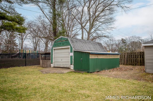 Welcome to this updated 3-bed, 3-bath Cape Cod home sitting on over half an acre, in the Village of Spring Lake! You'll love a completely renovated kitchen featuring quartz countertops, stainless appliances, gas stove, hood fan, double pantry, and all-new cabinetry. The main level offers a spacious primary suite, updated full bath, and an upgraded laundry room with custom cabinets. Wood floors and professionally painted interiors.Upstairs, you'll find a loft, an additional bedroom, flex room and bath. The lower level, garage, and storage shed provide ample storage space. Enjoy the fully fenced backyard, private access to Central Park, with pickleball courts and a dog park! A detached guest house with 2 bedrooms, 1 bath, full kitchen and cozy living area.